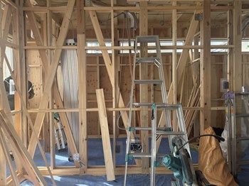 中間検査では、行政のかたに図面通りに金物が配置されているかを一点ずつ厳しくチェックしていただきました。
