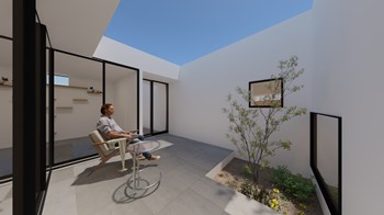 中庭が2つあり、猫と暮らす平屋建ての住宅です。