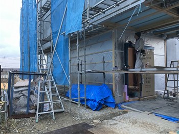 外壁の中塗りが終わり、仕上げを待つぐらいになりました。
