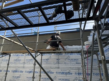 金網の上にモルタルを下塗りし、その上からジョリパットで仕上げていきます。