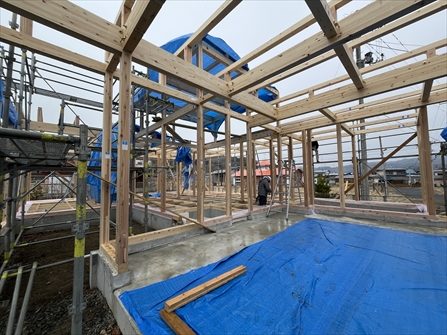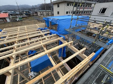 一戸町の住宅は冬休みを終えて建て方から工事が再開しています。