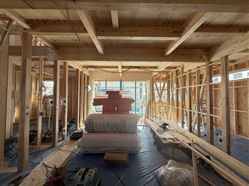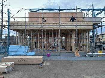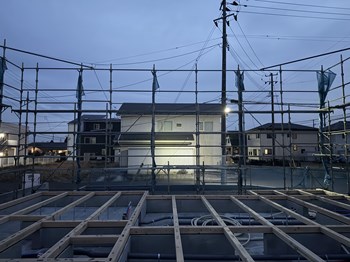 戸建住宅「まんなかリビングの家」では建て方が進んでいます。