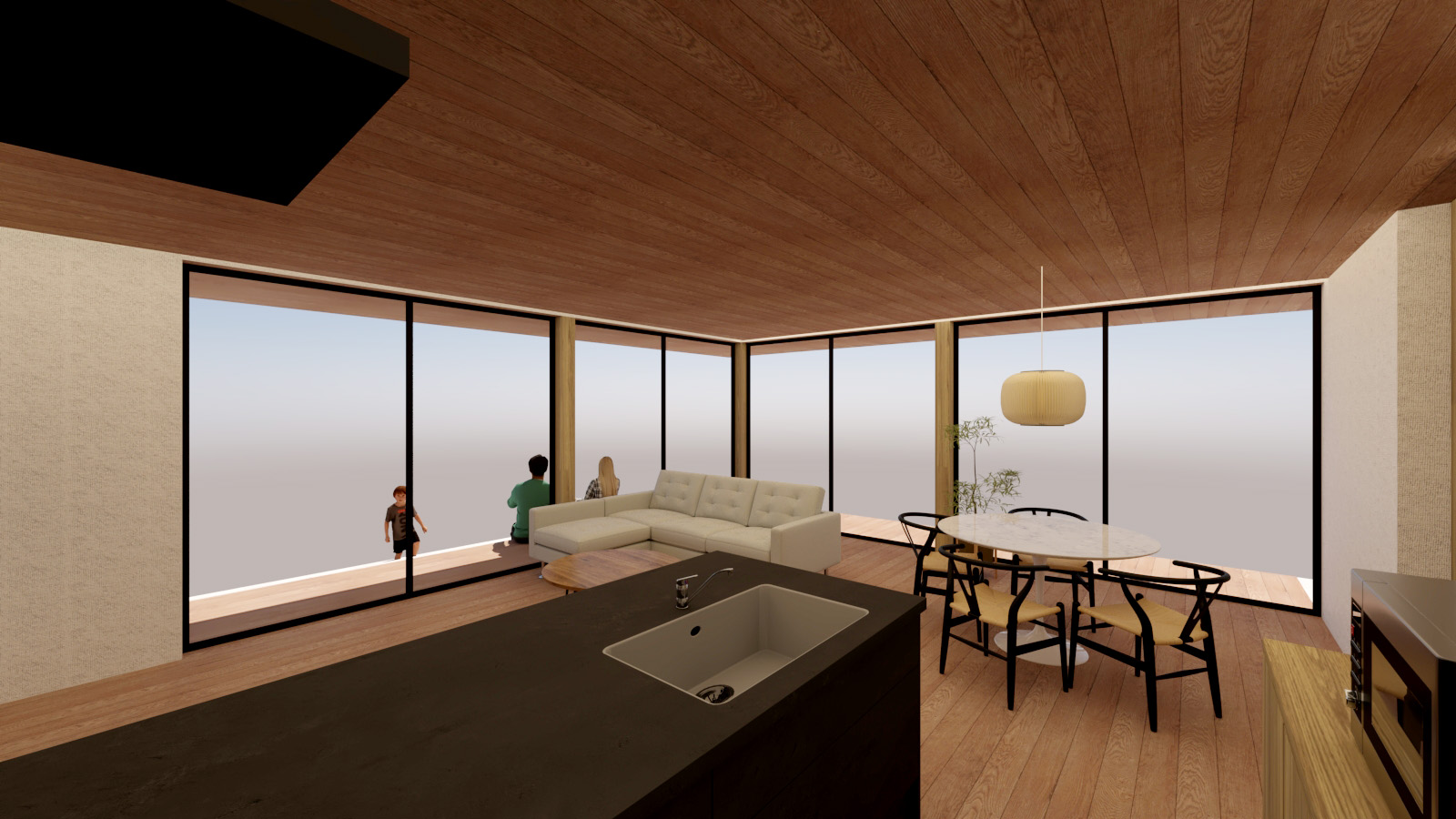 郊外の広い敷地にシンプルな平屋建ての計画です。