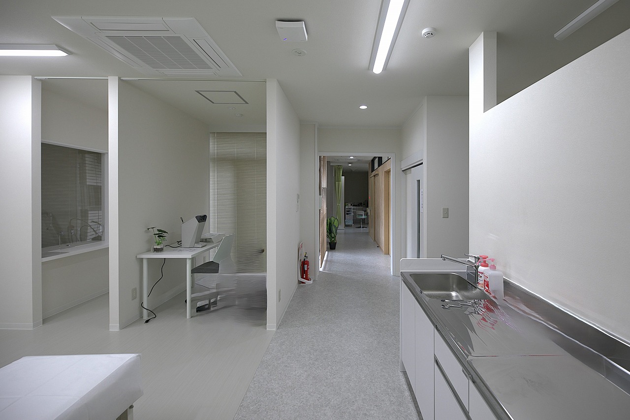 1階には心療内科、2階には院内薬局と休憩室、3階には院長室・事務局長室・事務室を配置し、機能的な医療施設へと生まれ変わりました。コストを抑えるため、既存の設備や建具は可能な限り再利用しつつ、快適性を重視して空調は最新のシステムに更新しています。