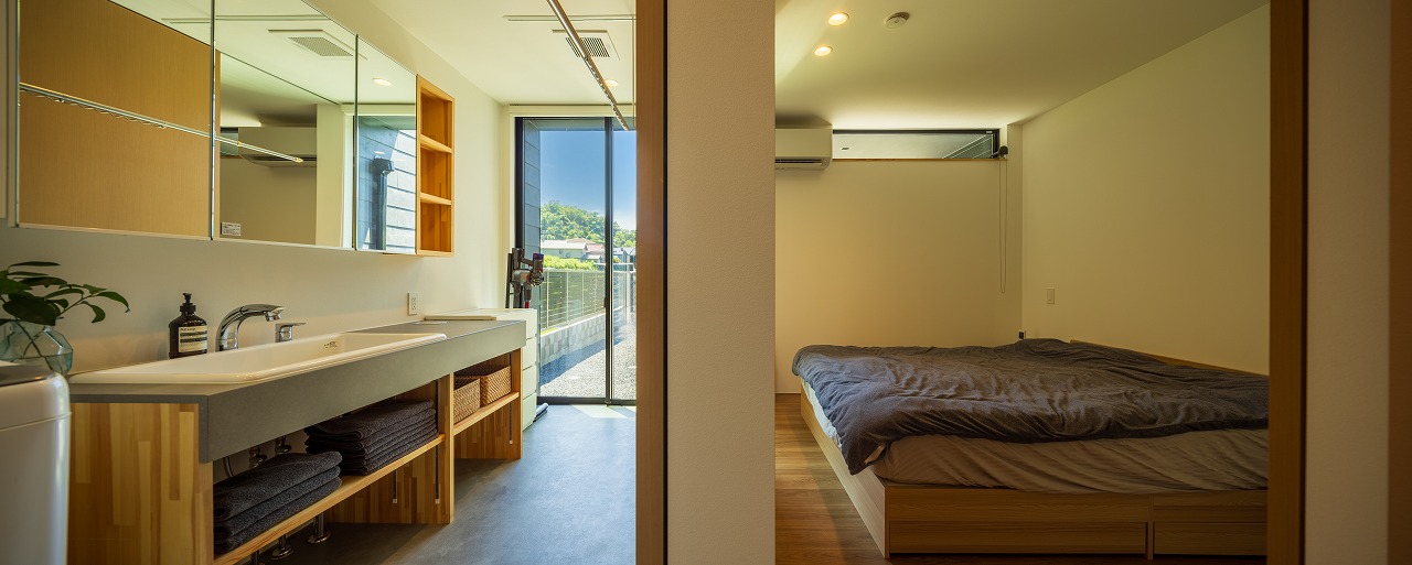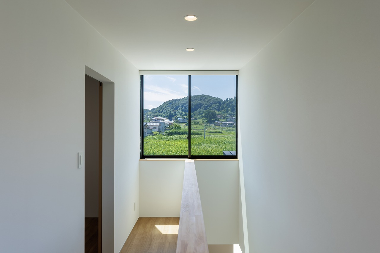 計画地は市街化調整区域と市街化区域の境界にあり、前面道路は4mに満たない狭さでした。南側が境界に面していたため、敷地条件を活かし、大開口を設けてもプライバシーをある程度確保できると判断しました。