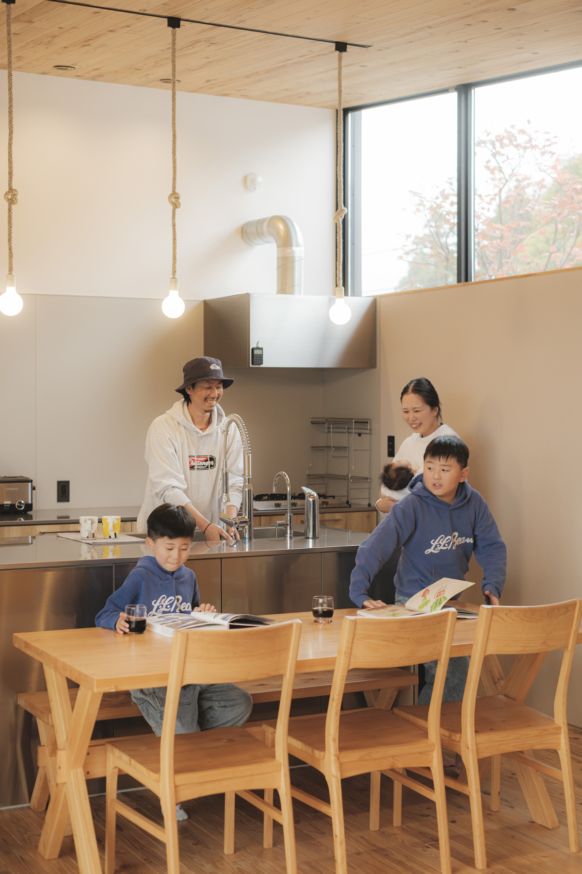 ラフに使える土間空間に薪ストーブ、その土間から外につながるテラスのような空間で外も中の空間も楽しみたい、そんなイメージを形にするためプランニングがスタートしました。