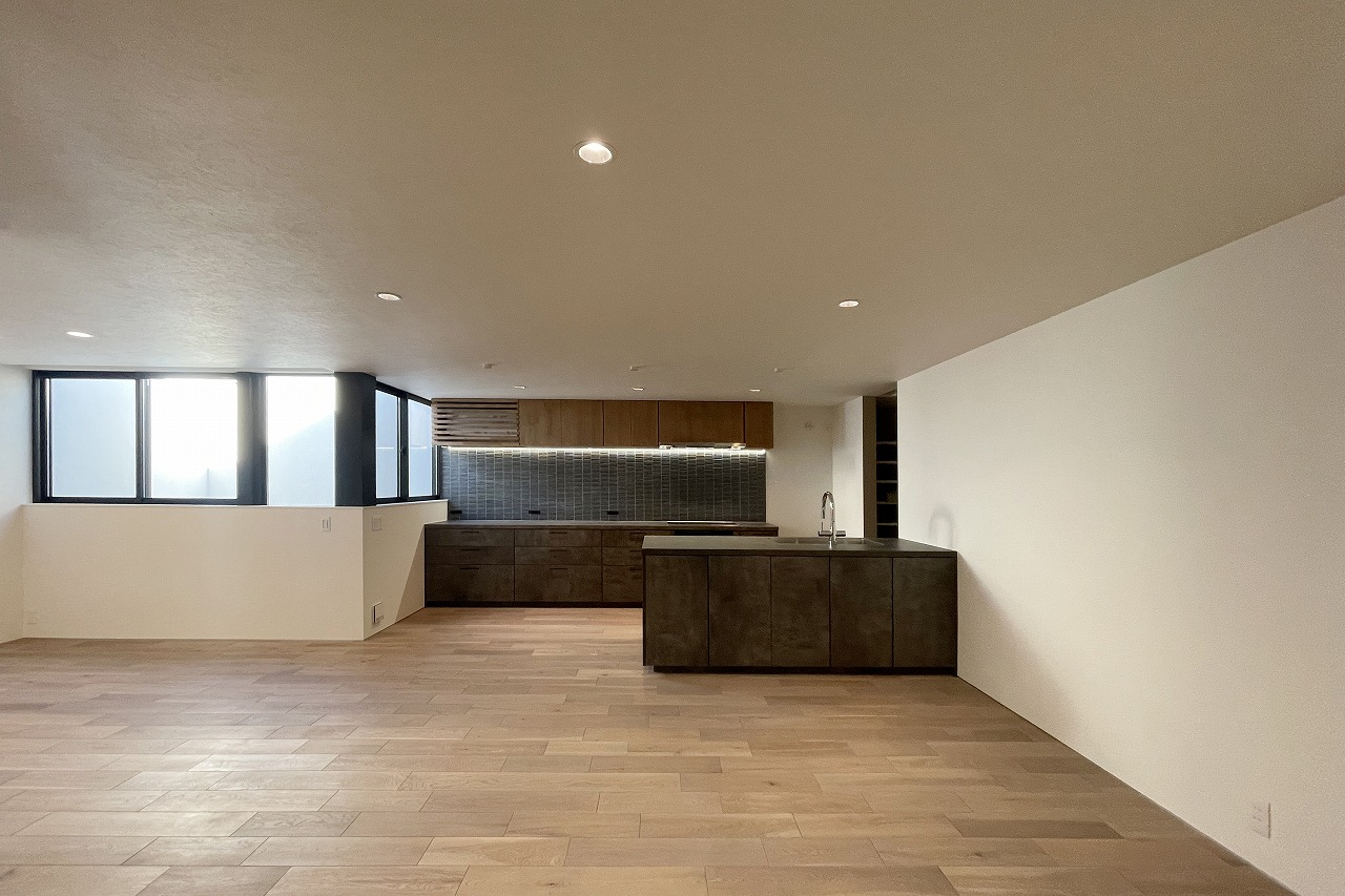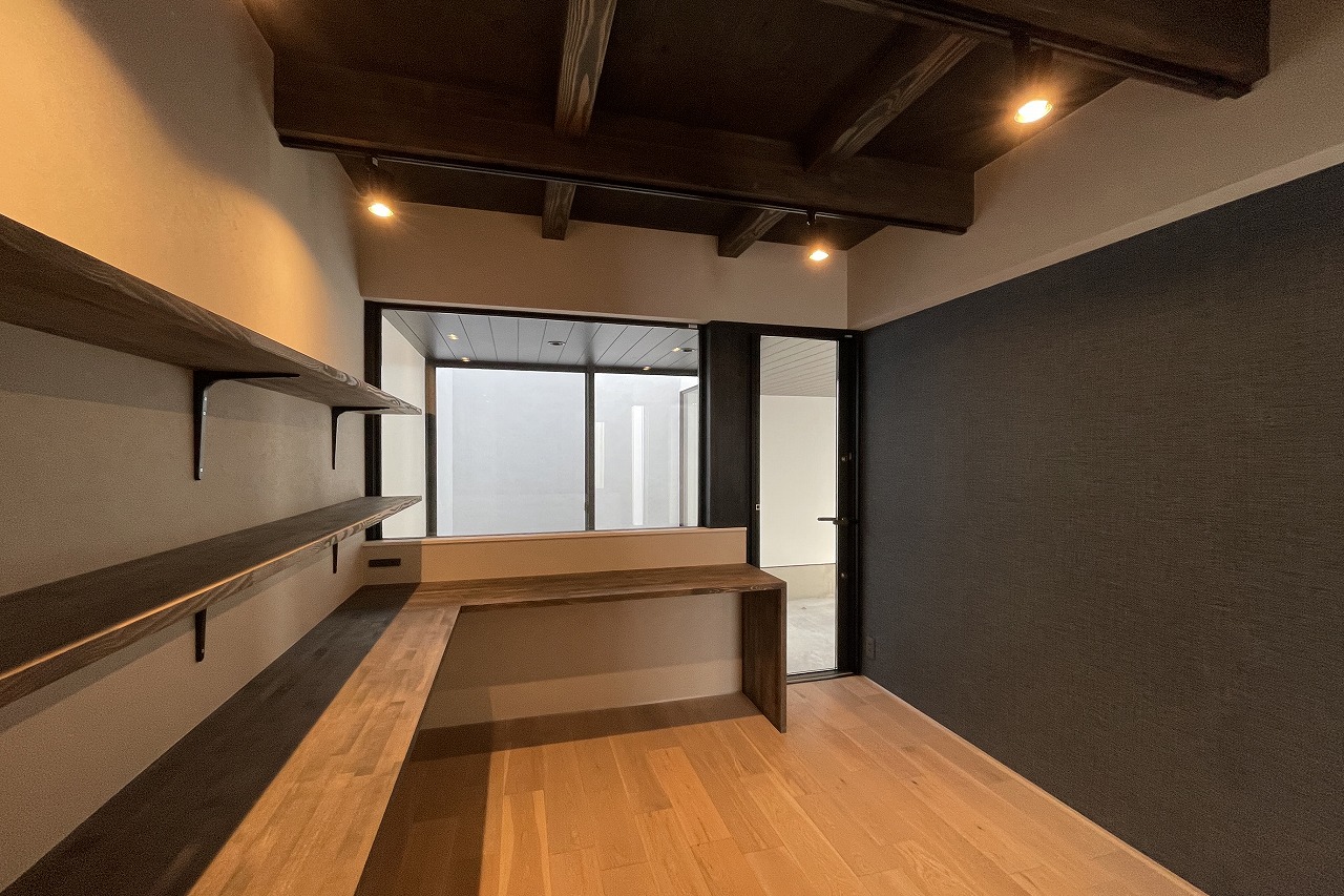 建物内部へ採光を取り入れています。三隅からの採光により建物全体に光が届き、外部から閉じつつも閉塞感なく、開放的