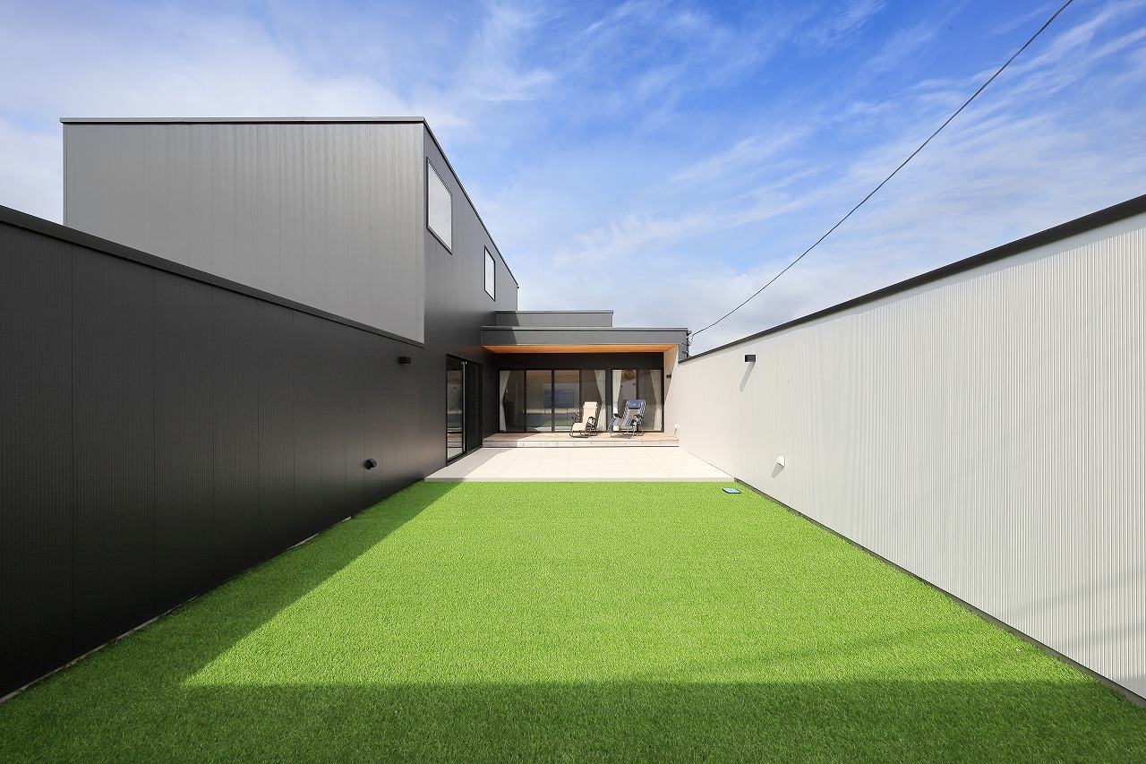 L型の立面と平面を持っており、“長い庭“が特徴の住宅です。
