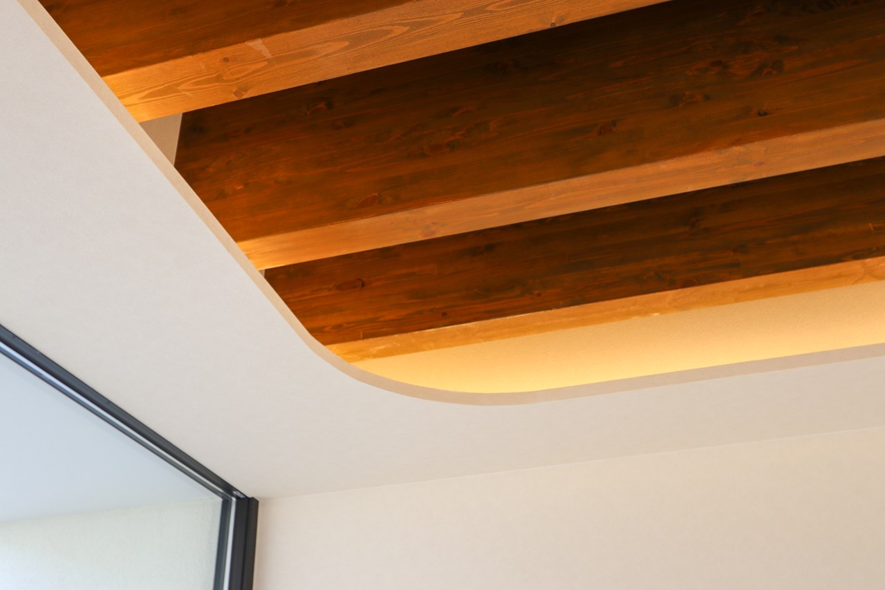 囲まれたこの小さな庭は、光を反射させる“装置”としても働き、時間帯によって異なる明るさや陰影を室内へもたらし、こうした光の揺らぎや距離の取り方が、住まいの中に複数の居場所を生み出している。