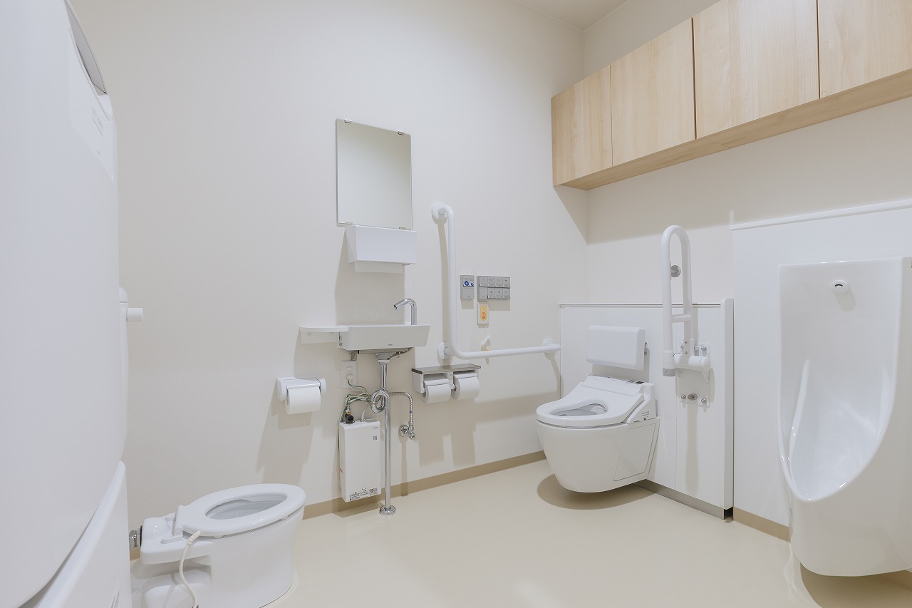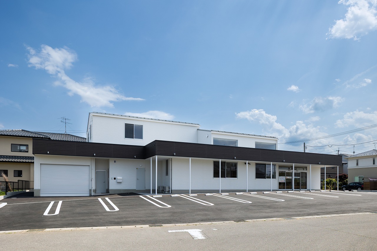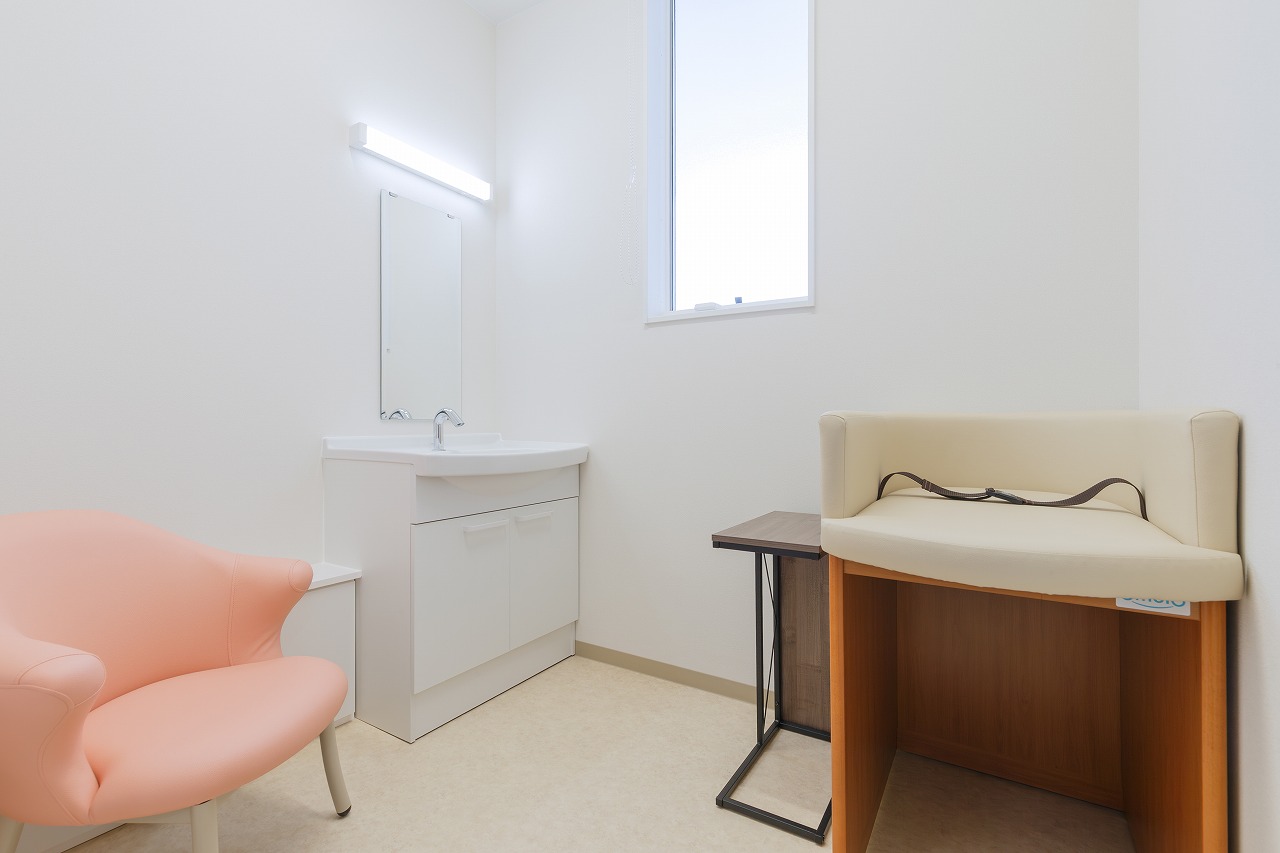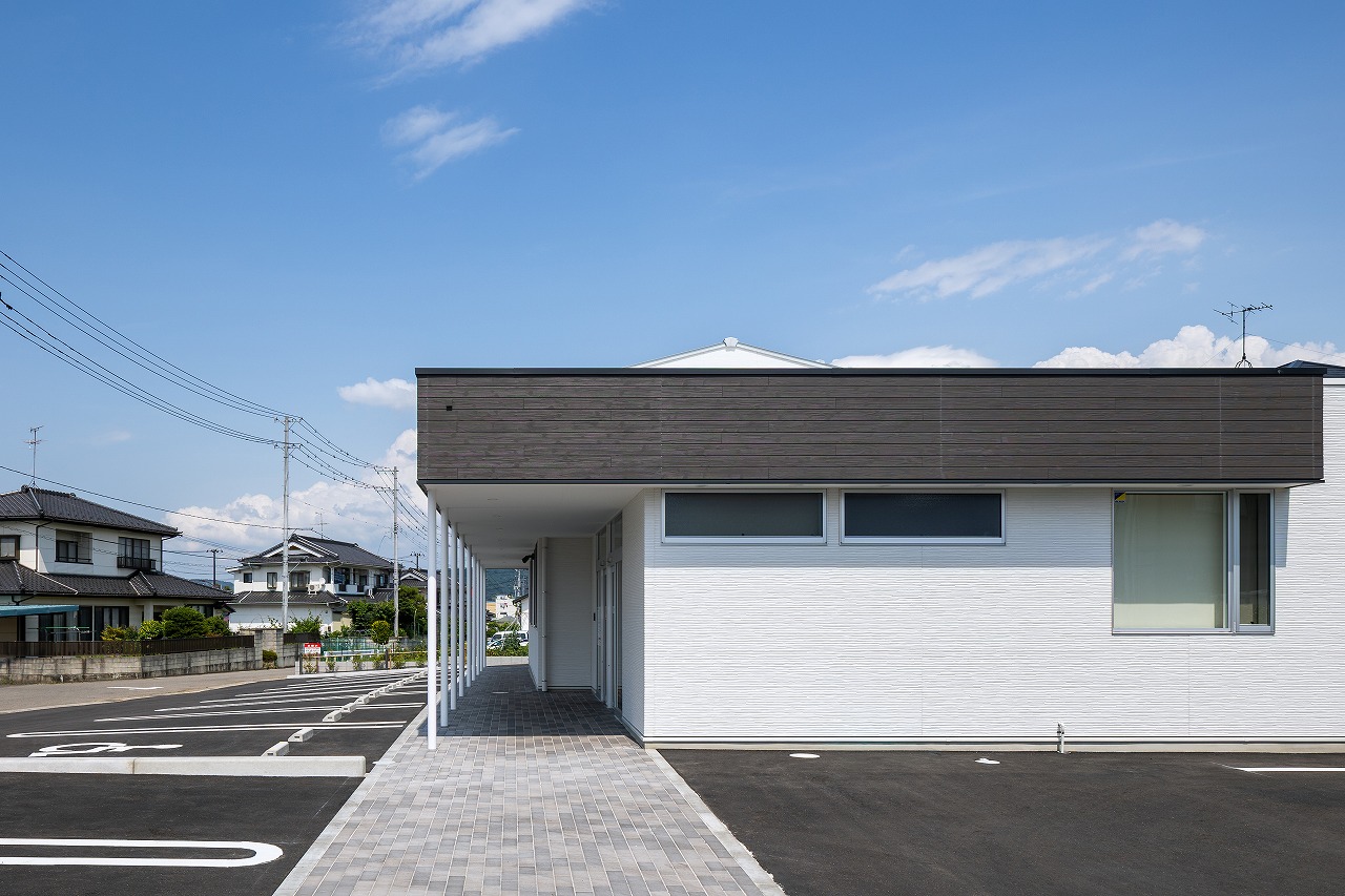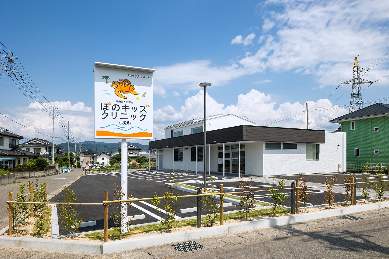内部には診察室に加え、感染症対応のための隔離室を配置し、機能性にも配慮しています。外観はモノトーンでシンプルにまとめ、内部は子どもや保護者が安心できる柔らかな色調でコーディネートしています。