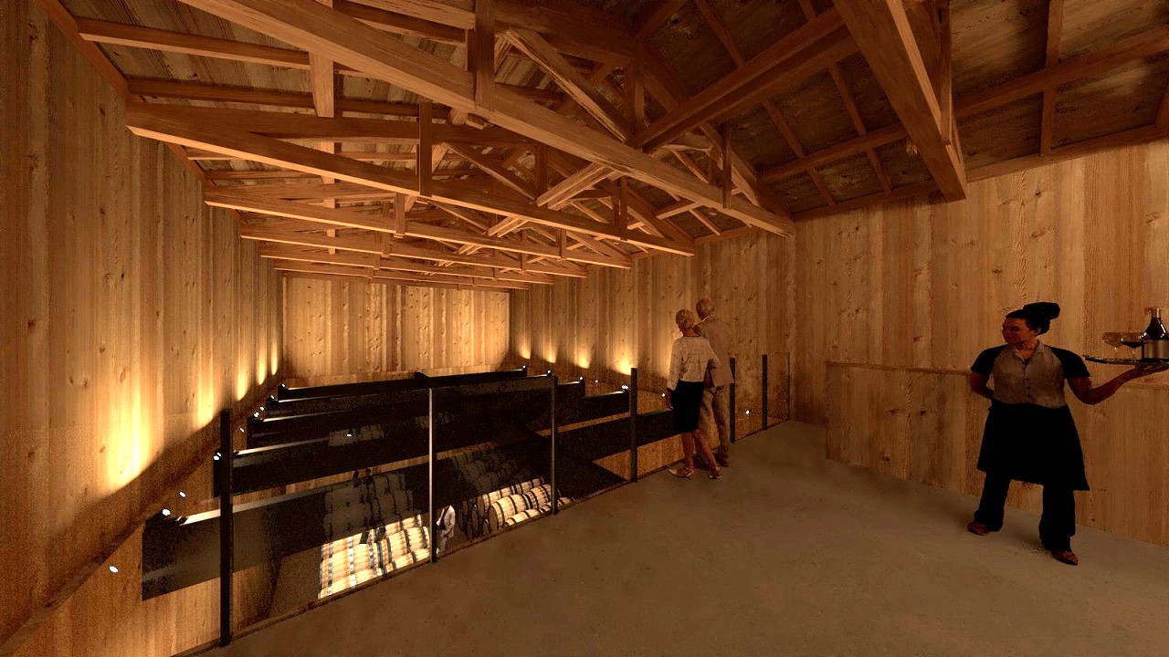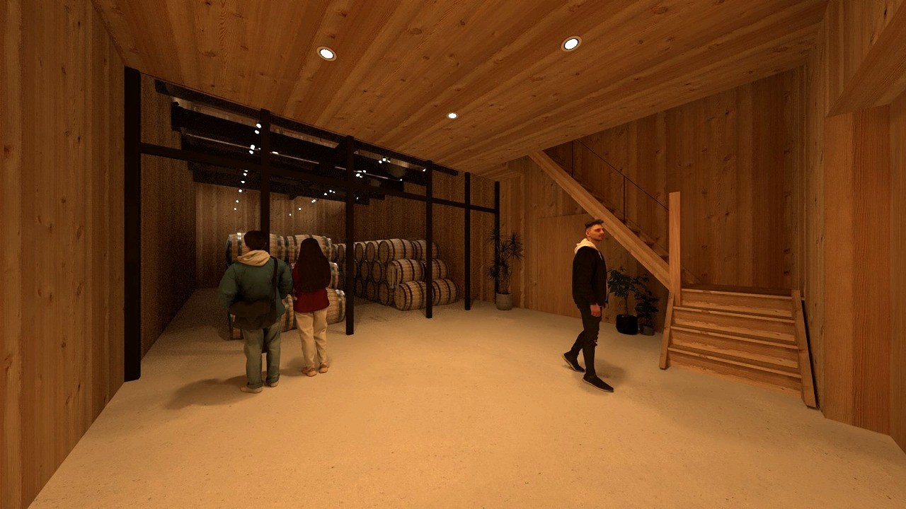 茶葉の貯蔵からウイスキーの貯留へ用途を変更し、貯蔵を見せる空間とします。