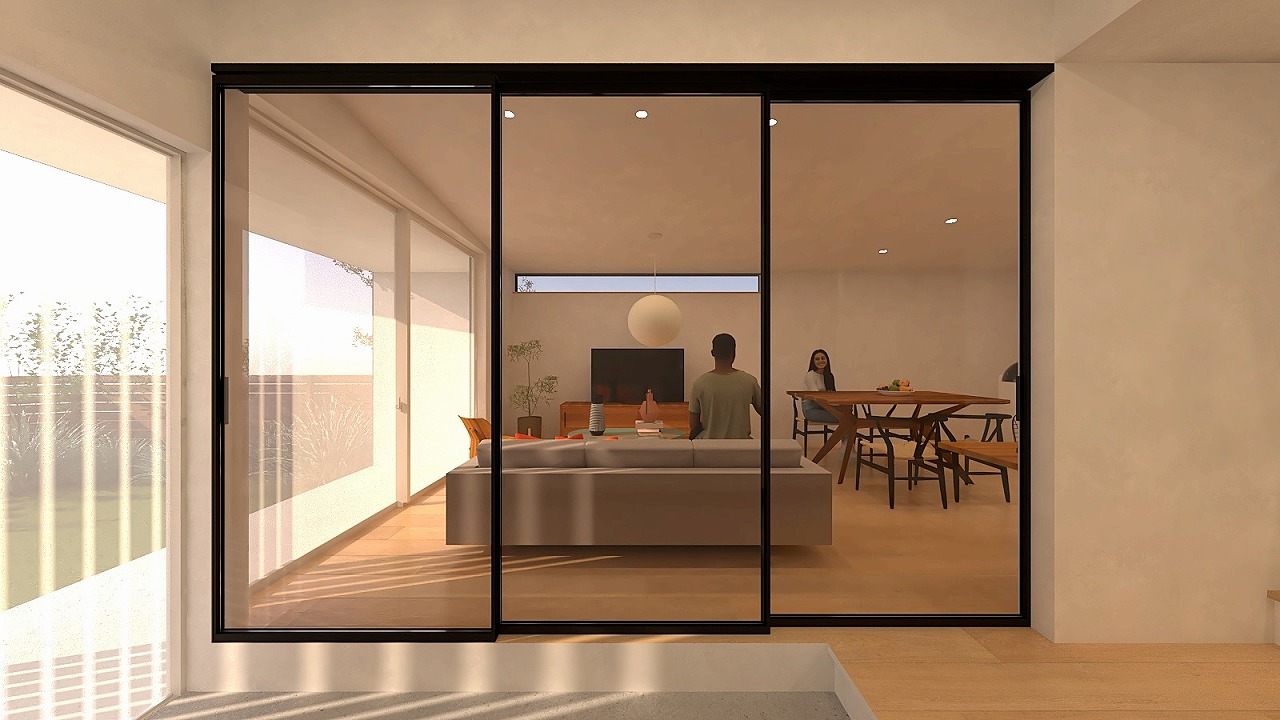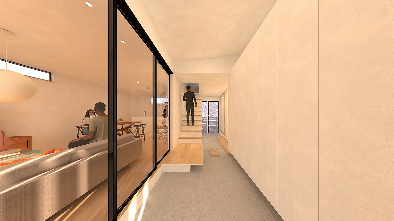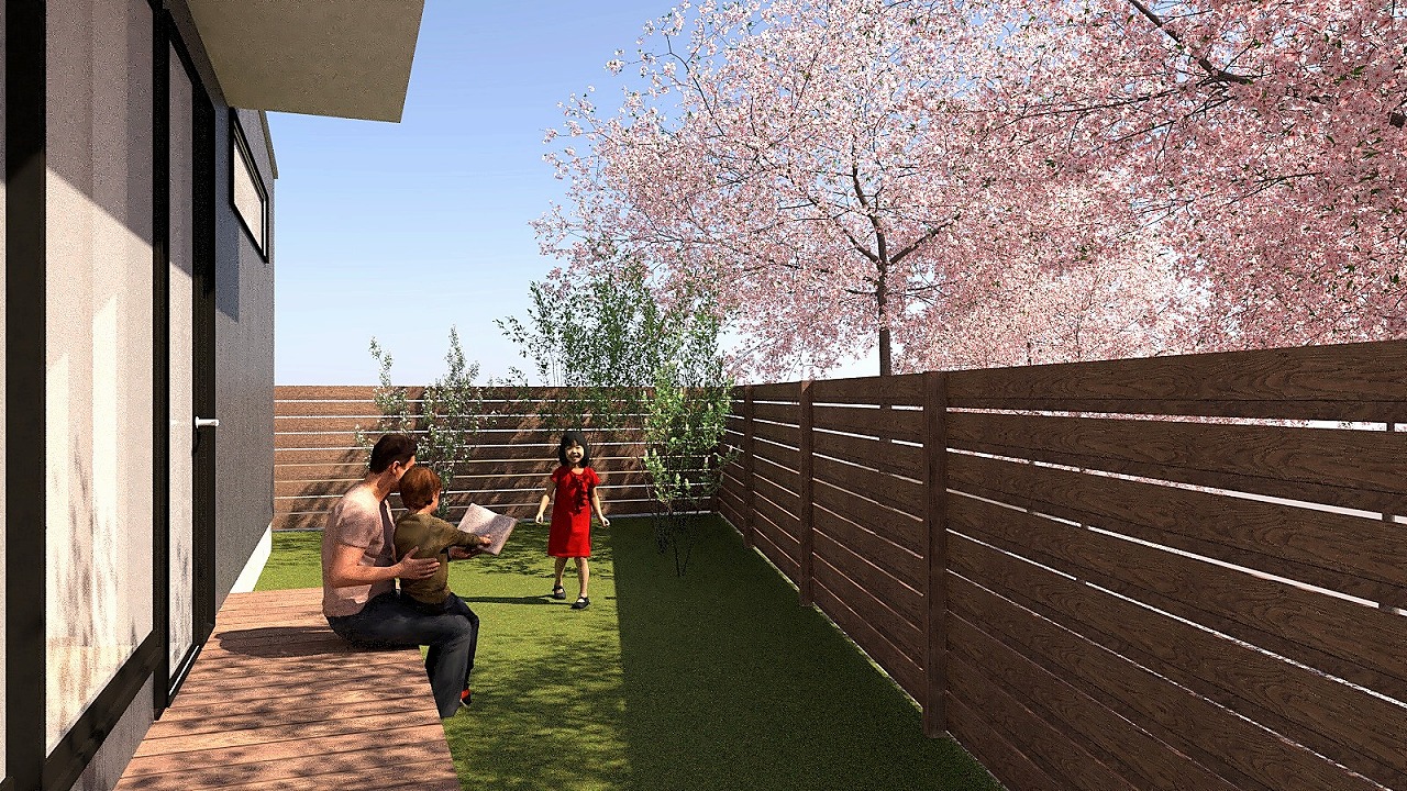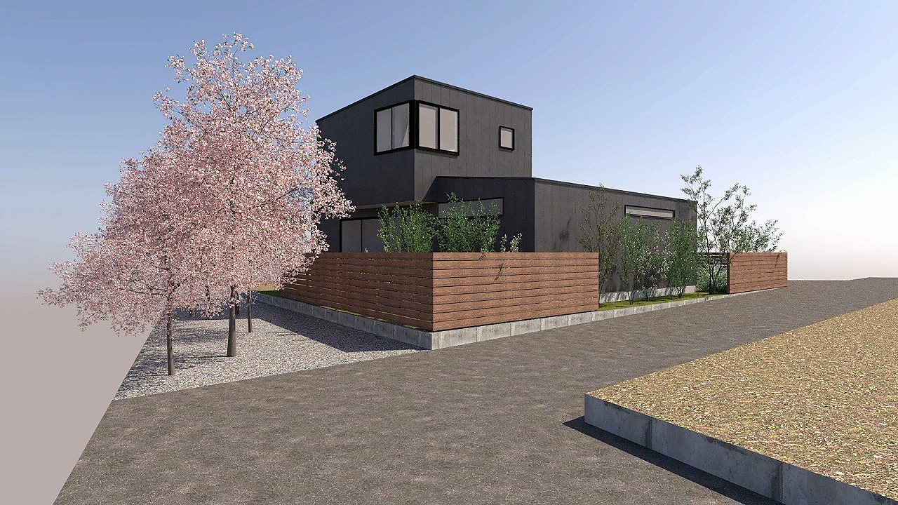 住宅の南北に通り土間を設け前庭と裏庭をつなぐ計画としました。